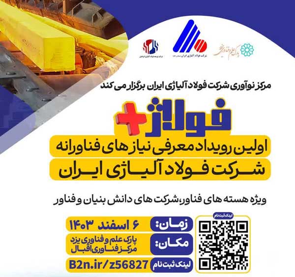 مرکز نوآوری شرکت فولاد آلیاژی ایران، نخستین رویداد معرفی نیازهای فناورانه این شرکت را با عنوان «فولاژ پلاس» برگزار میکند.